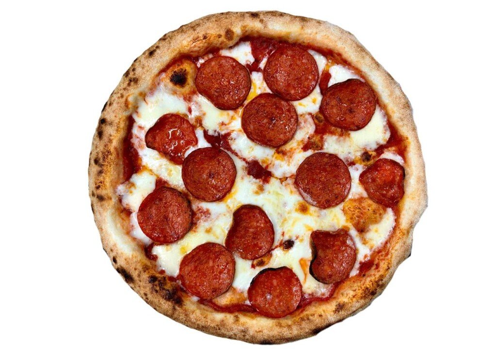Красный соус, сыр моцарелла, колбаса пепперони
