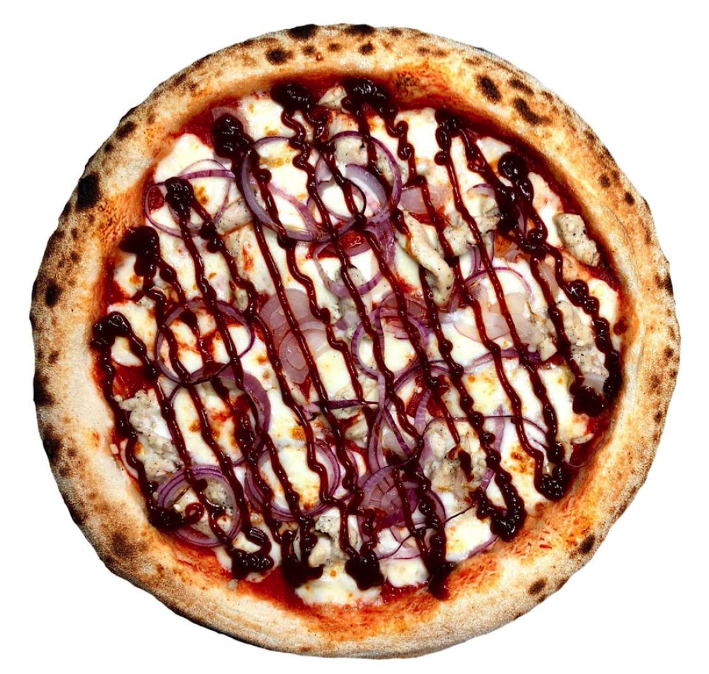 Красный соус, сыр моцарелла, филе курицы, красный лук, соус BBQ