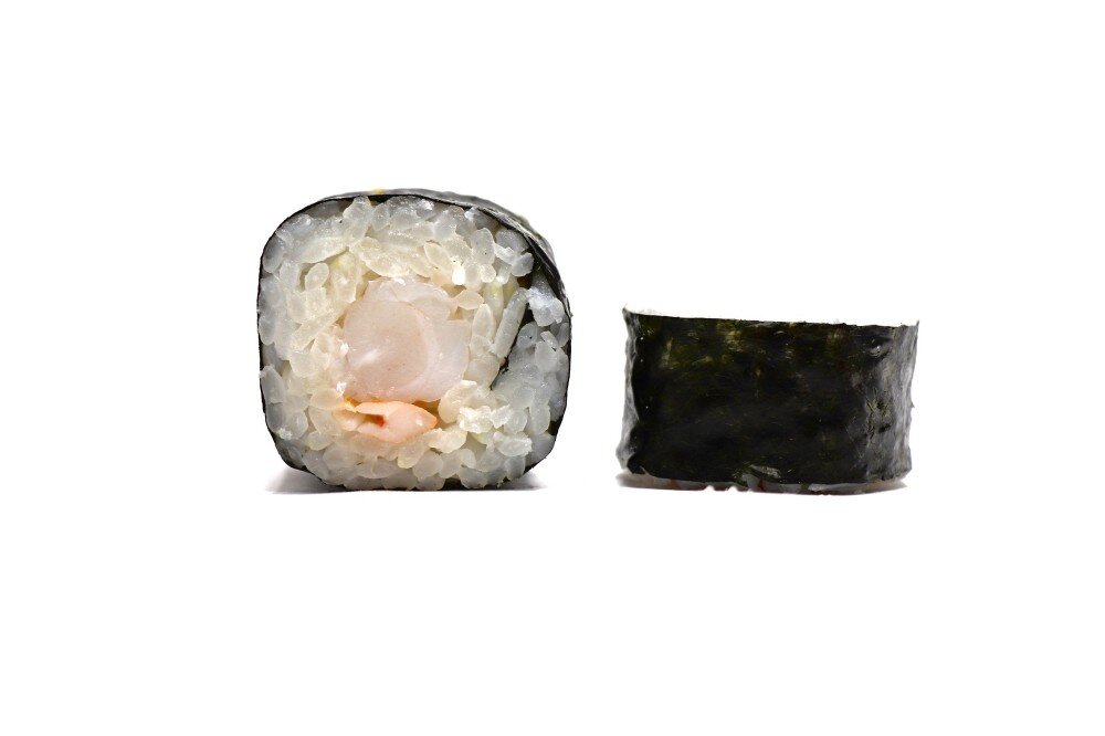 Лист нори, рис, креветки