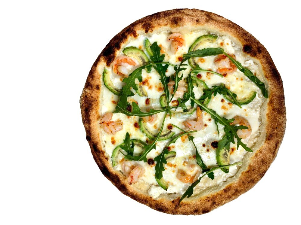 сливочно-творожный соус, сыр моцарелла, креветки, руккола