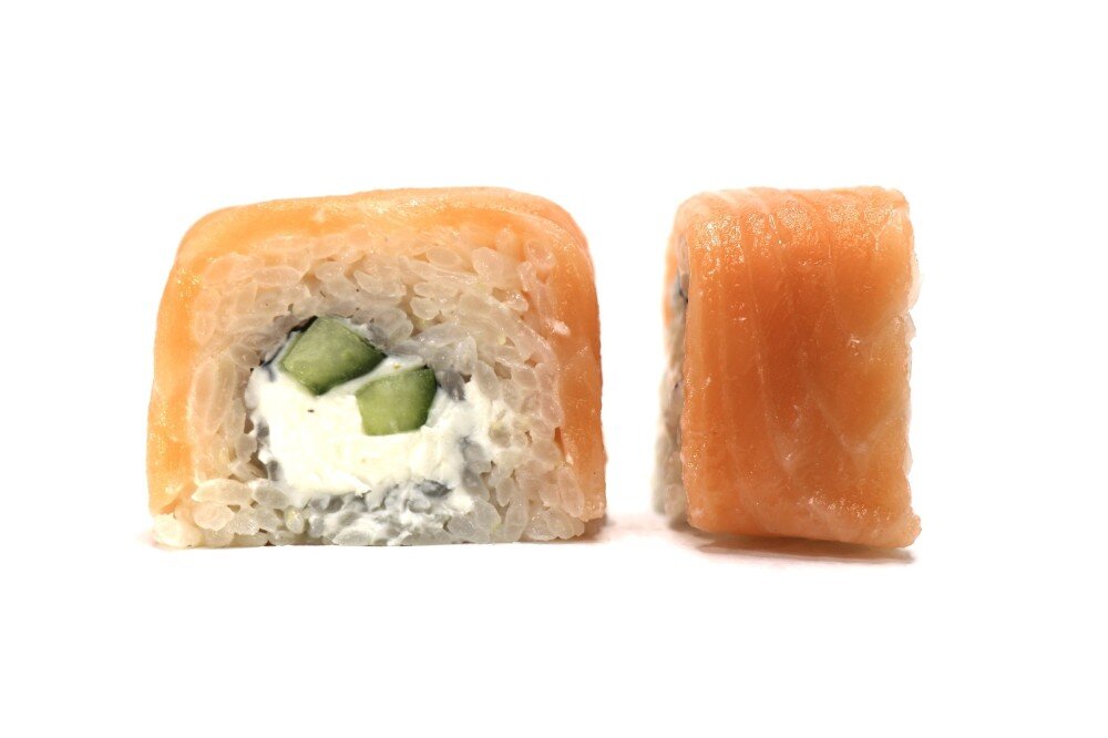 Лист нори , рис , сыр филадельфия , огурцы , сёмга